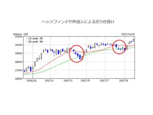 ここからどうなるかですが、安倍総理は28日招集の臨時国会冒頭で、衆院解散の意向を固めたようですので、選挙アノマリーへの期待が高まるはずです。その他に、日米金利差拡大の期待による円安が今週辺りに確認できれば、日経平均はまた2万円超で推移することになりそうです。